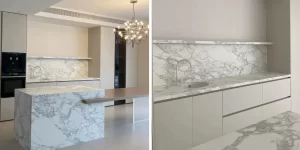 Arabescato Venato Marble Countertops is sourced from Italy. The marble from there has always been of high quality and is renowned. It has an exquisite appearance, so high-end kitchens and bathrooms all love to use it.