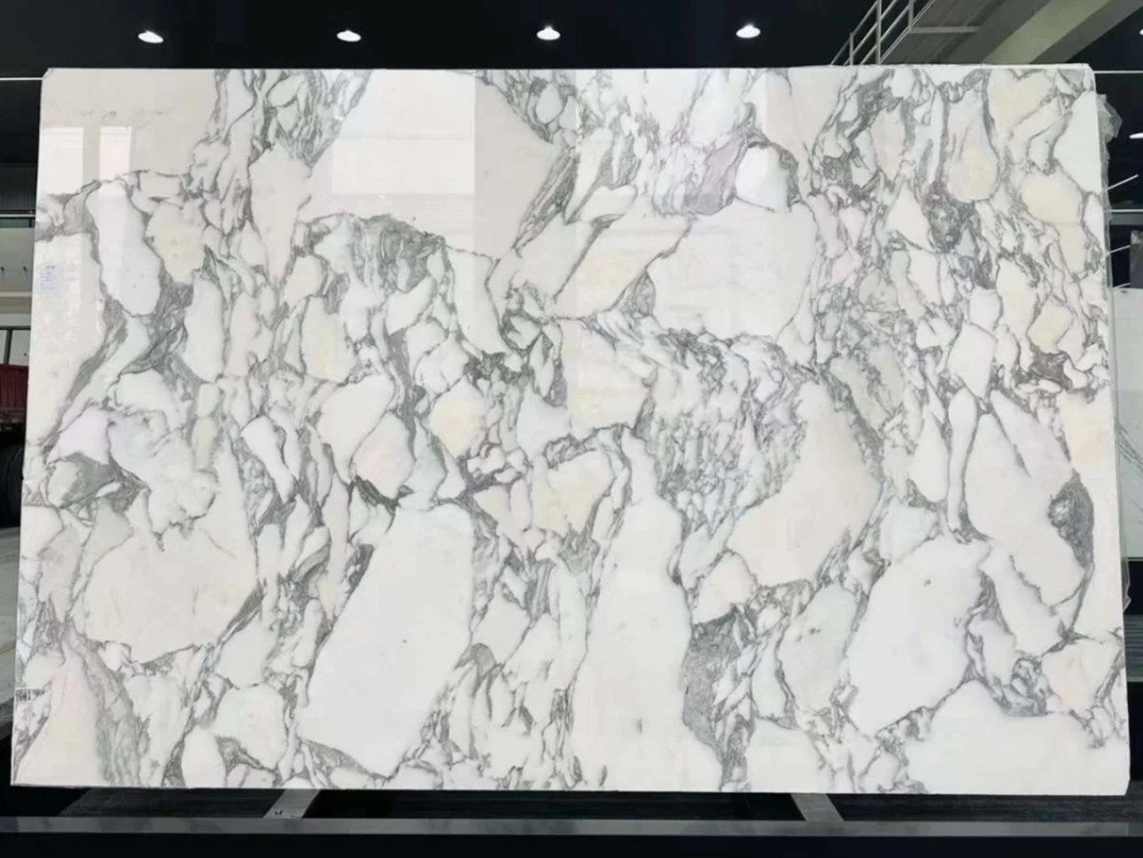 Arabescato Venato marble slabs with a hazy gray tone, not a dark gray, but rather a “gray” covered with a thin veil. the white veins are soft and gentle, not the bright white, but more like white with a touch ofmilk. These two colors intertwine on the slab, not in straight lines, but in swirling patterns,creating an elegant and timeless look that never goes out of style.