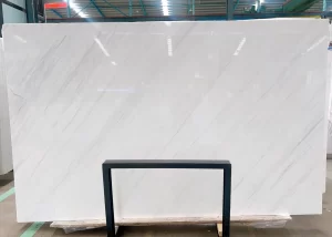 The pure white background with subtle veining gives this marble a timeless and classic look, making it versatile for various design styles, from traditional to contemporary.